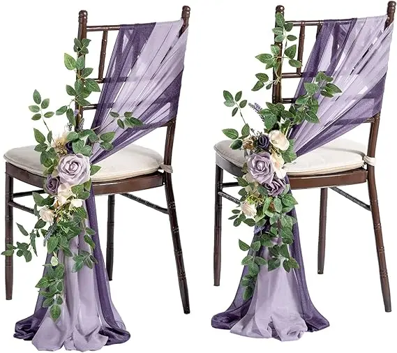 8 Wedding Chair Decorations Artificial Flowers Greenery Lilac Purple